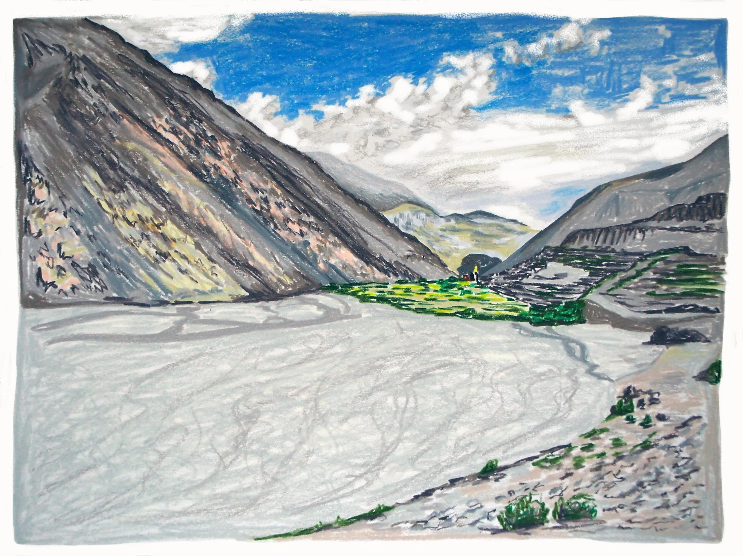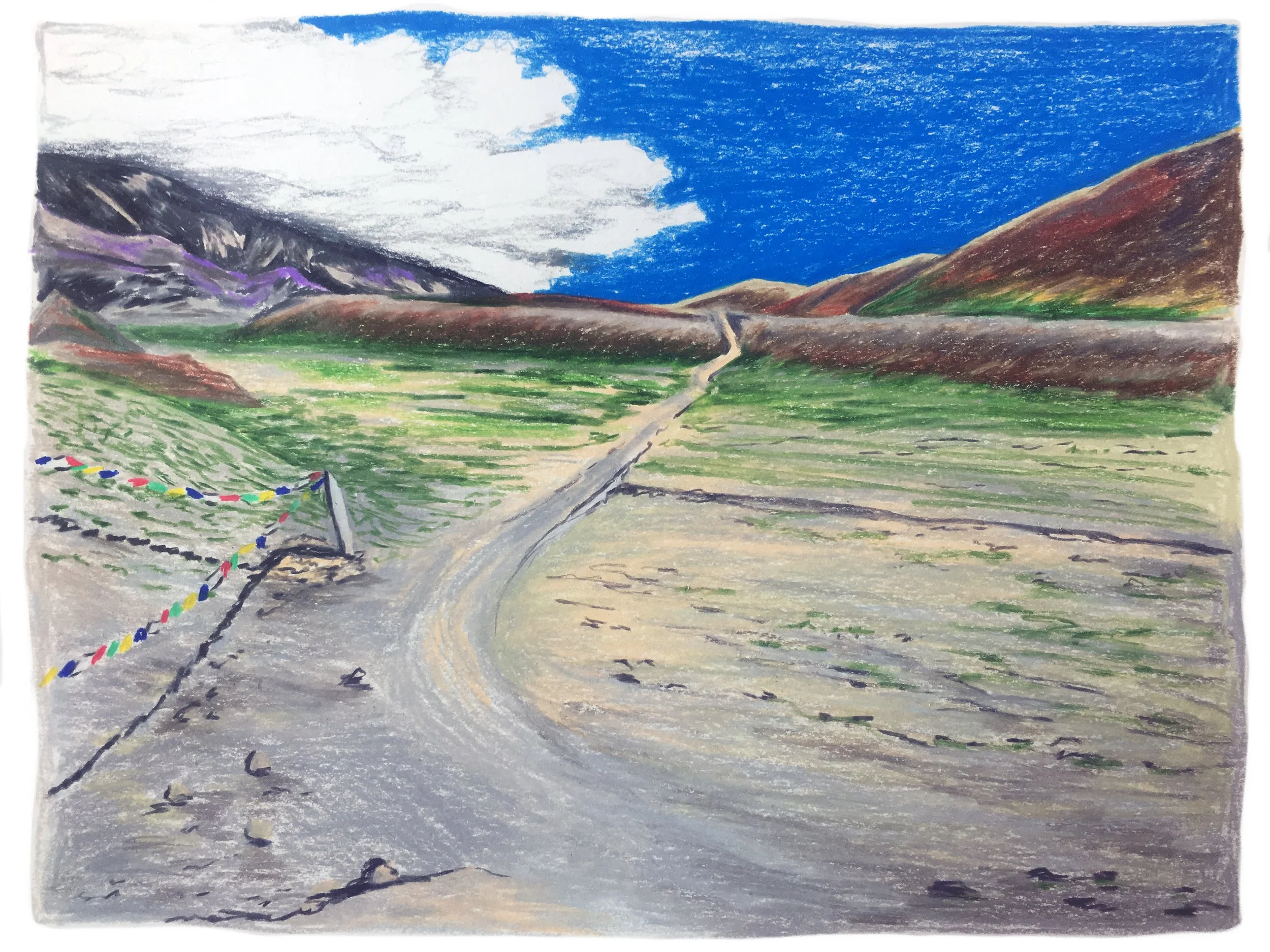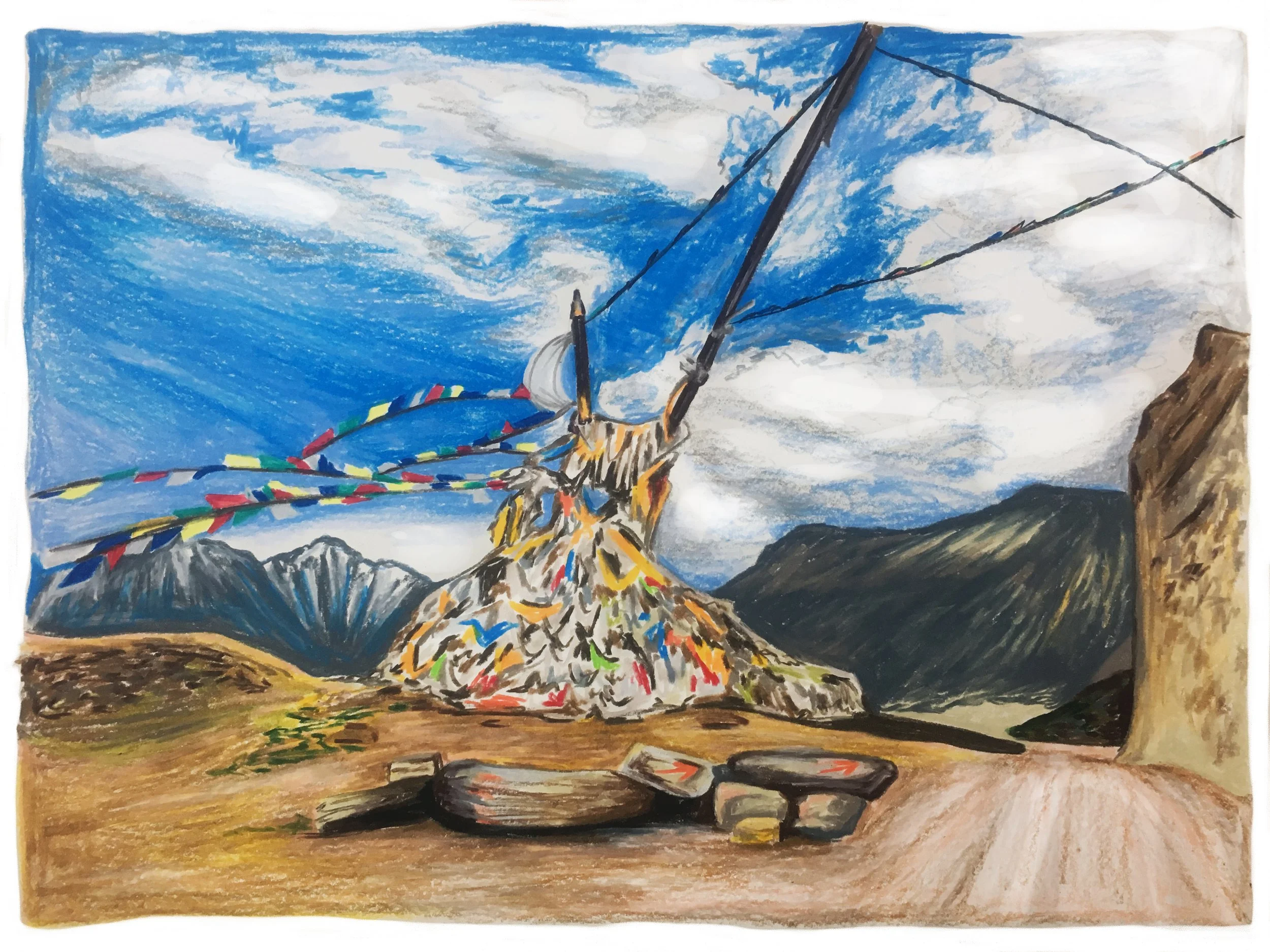 In 2019, while I was living in Kathmandu, Nepal, I created this series of colored pencil drawings for an interactive visual narrative set in Upper Mustang, Nepal. I combined the colored pencil drawings with digital drawings and gif animations, and I coded a website to host the story.